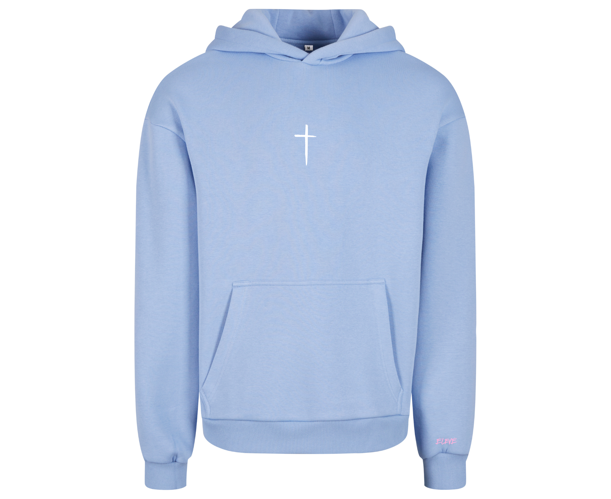 This soft beryl blue hoodie features a single Christian cross — a symbol of peace, renewal, and the calm strength that comes from walking with God.