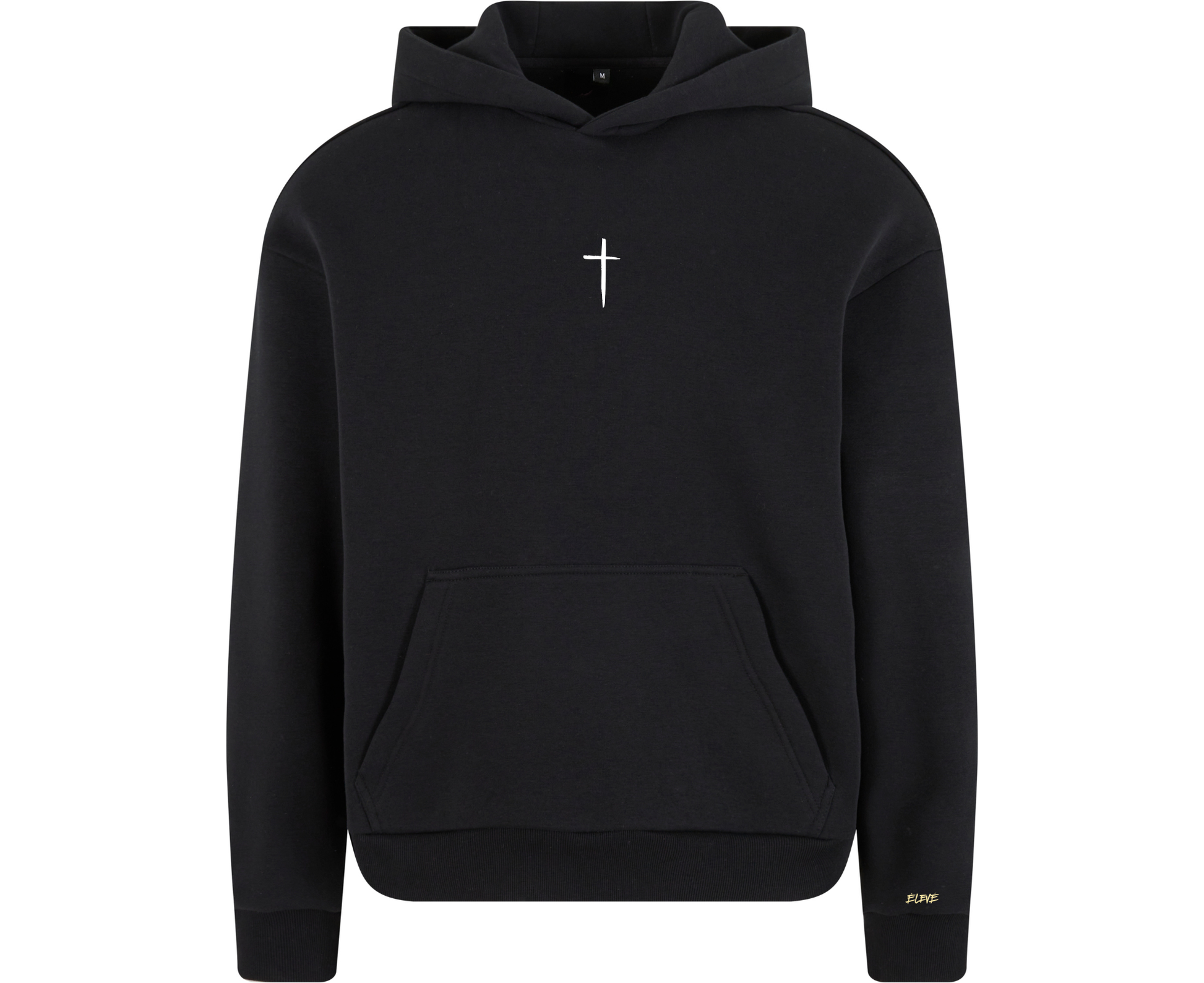 This plain black hoodie features a single symbol — the Christian cross — representing the power of faith, humility, and purpose.